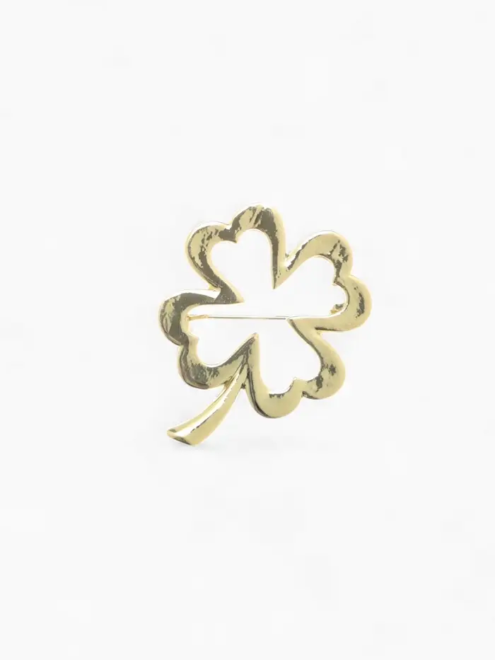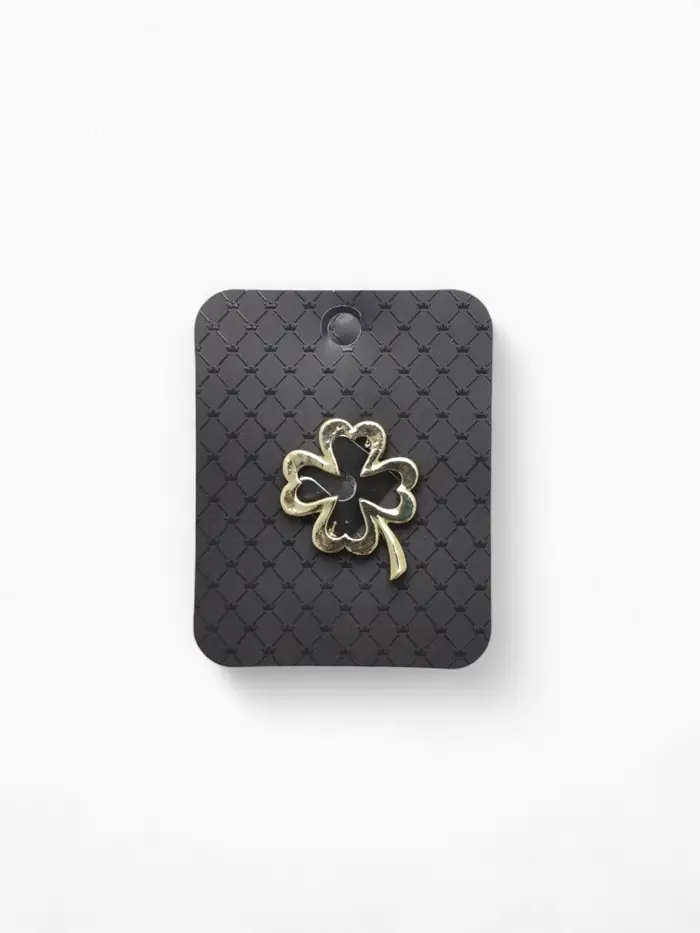 Металлическая основа обеспечивает прочность и долговечность изделия, а золотой цвет фурнитуры придаёт броши благородный и тёплый оттенок. Отсутствие вставок подчёркивает чистоту линий и элегантность формы, делая брошь стильным символом удачи и гармонии.