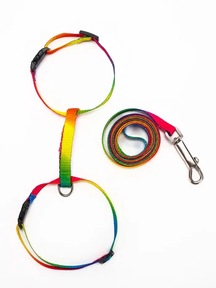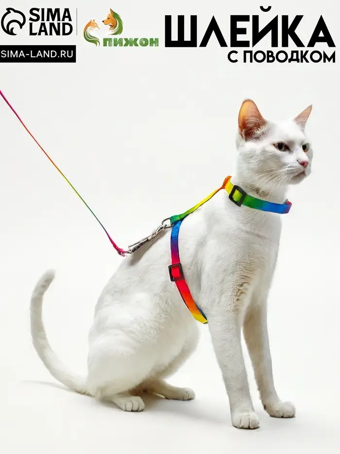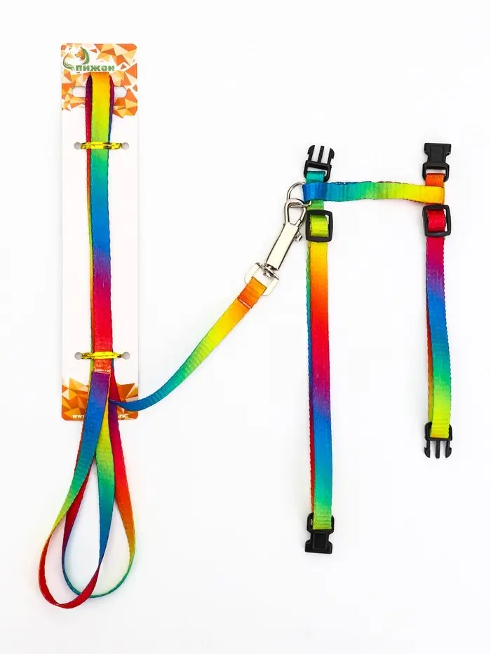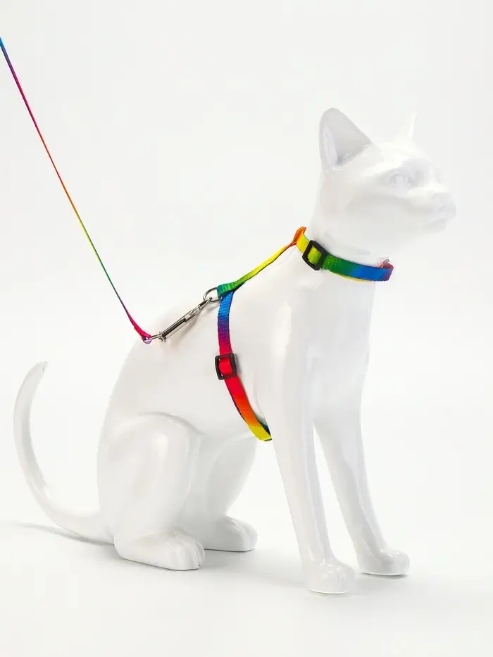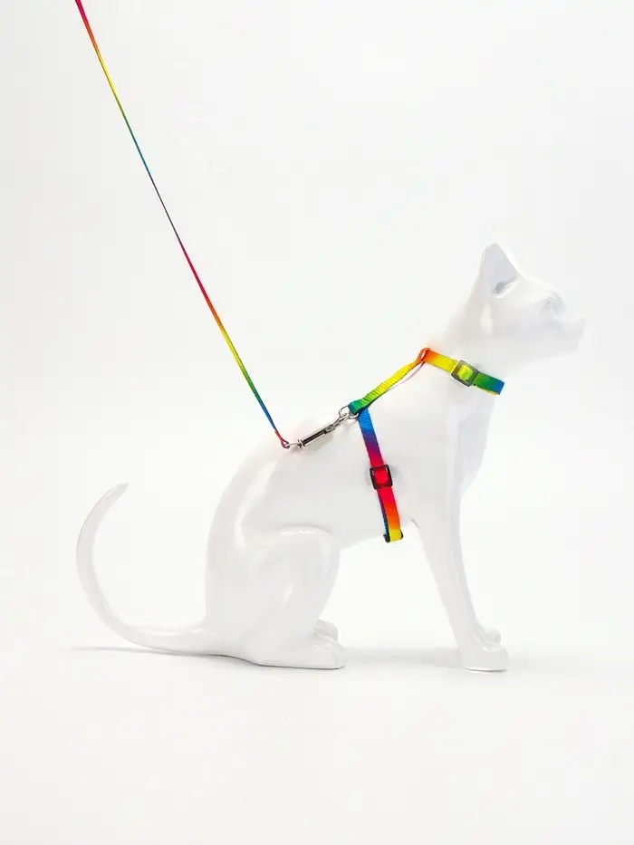 Комплект для кошек «Радуга», ОШ 16.5-27, ОГ 21-35 см, ширина 1 см, поводок 120 см