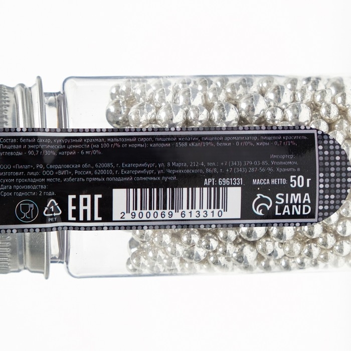 Кондитерская посыпка «Жемчужный бисер», 50 г