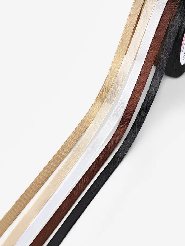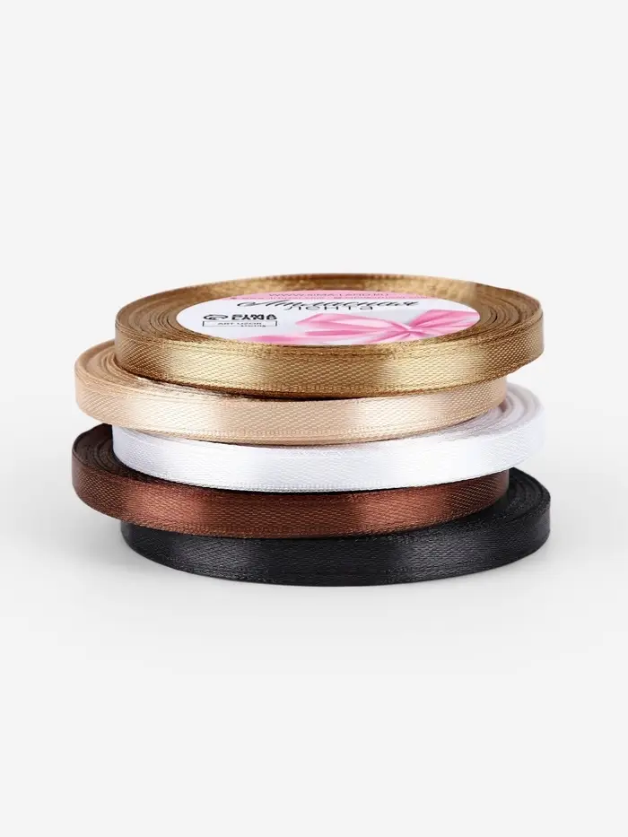 Атласная лента, набор 5 шт., 6 мм, 23±1 м, бежевый, коричневый