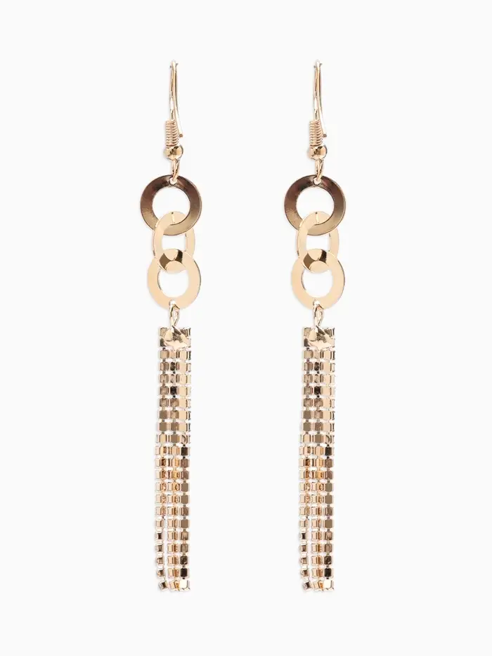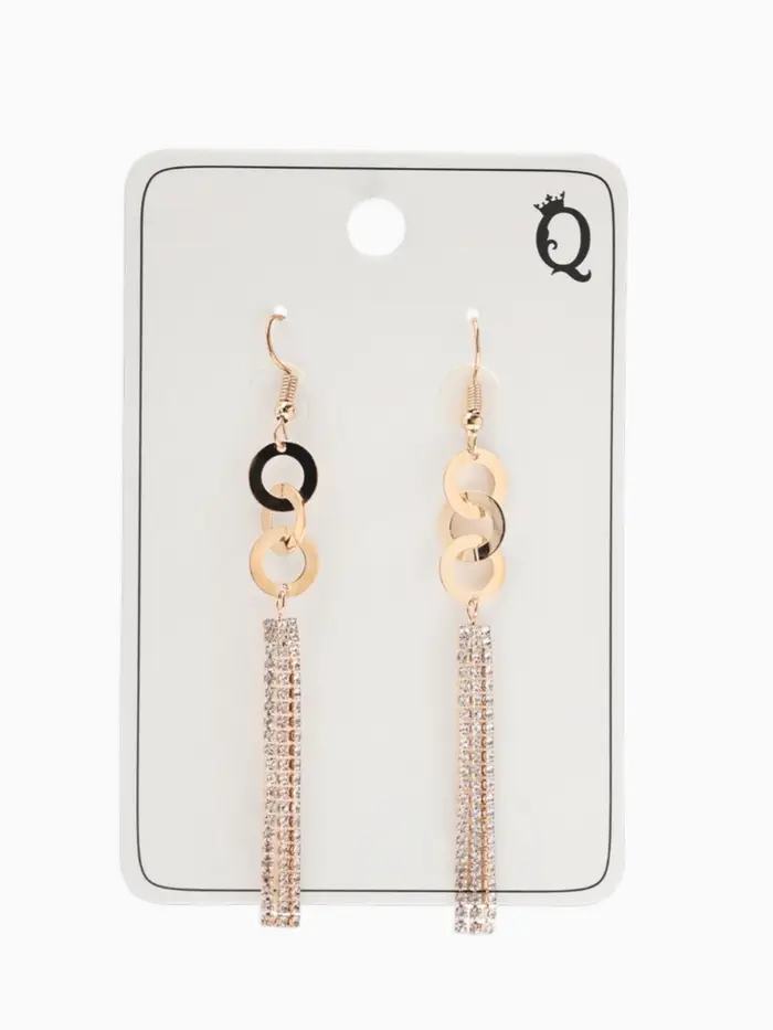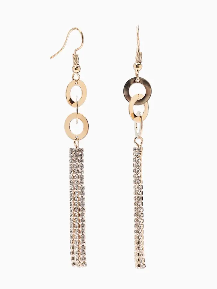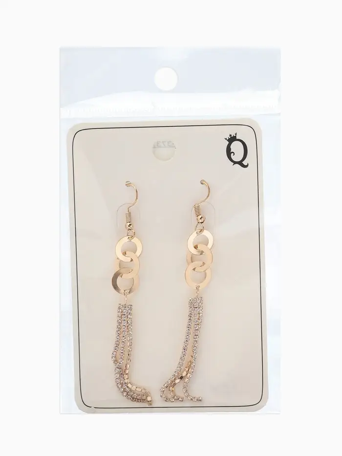 Серьги висячие со стразами «Вечерние», нить и кольцо, белые в золоте,10 см