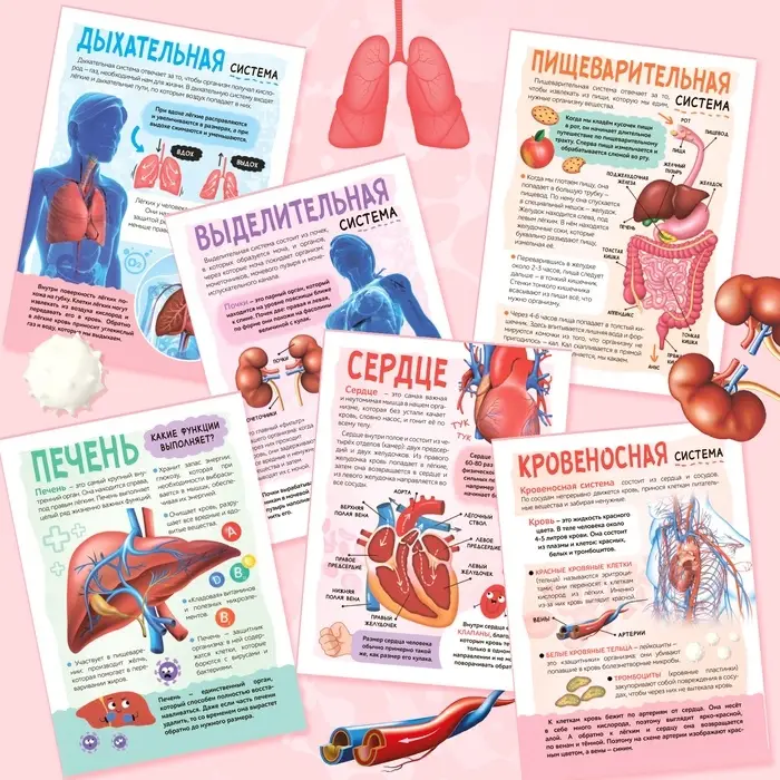 Книга с прозрачными страничками «Моё тело» — это увлекательный курс по изучению человеческого организма. В ней собрано большое количество удивительных фактов о строении тела. А ещё есть прозрачные странички. На каждой из них — изображение одной из систем организма. Если наложить их все друг на друга, получится подробный макет человеческого тема со всеми органами и системами.