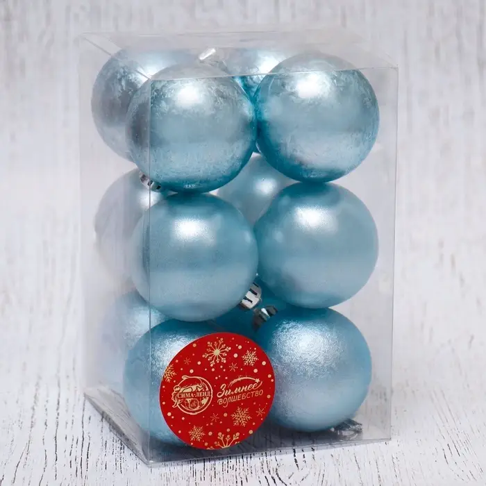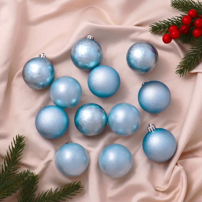 - Комплект из 12 шаров насыщенного голубого оттенка.