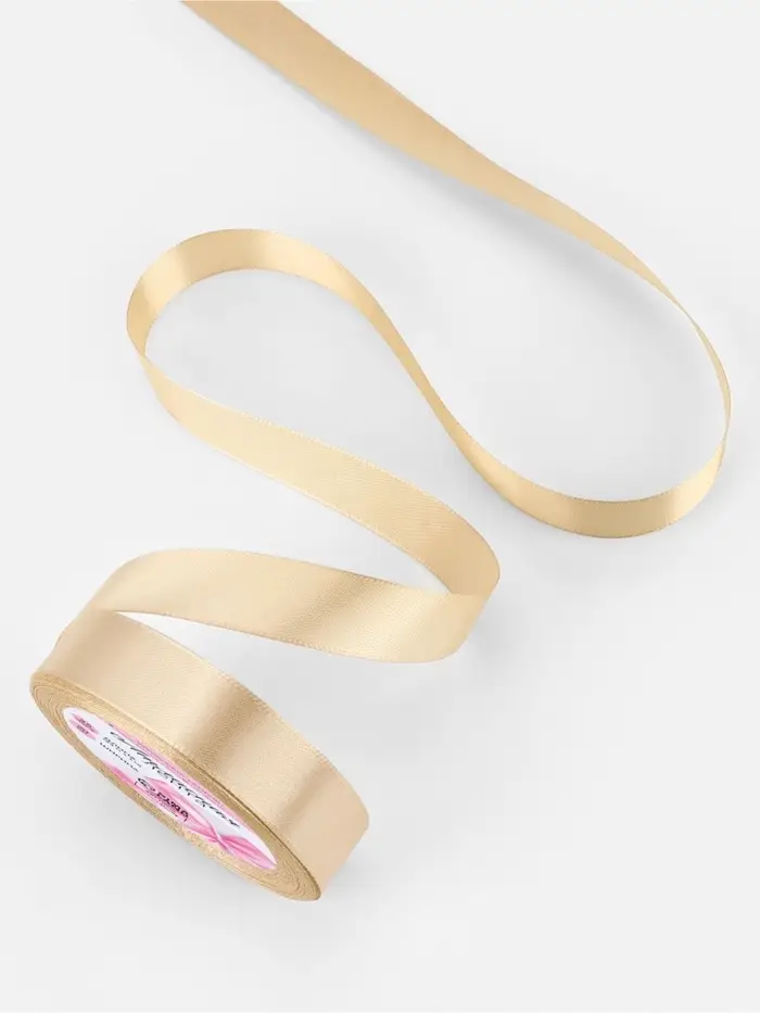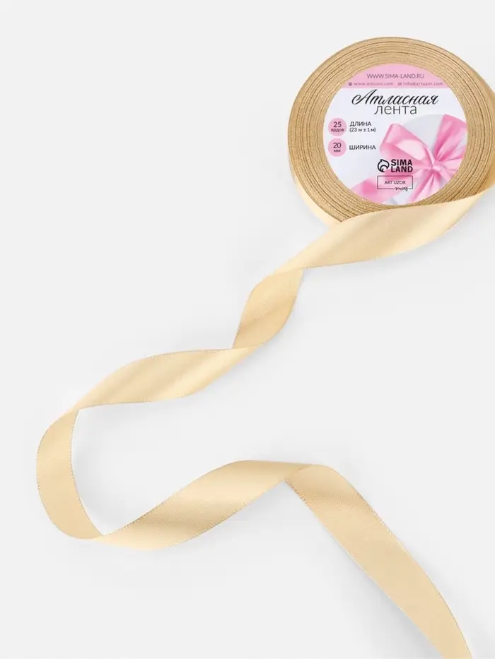 Окунитесь в мир изысканного декора с нашей светло-бежевой атласной лентой шириной 20 мм. Она идеально подходит для создания неповторимых композиций на свадьбах, юбилеях и других важных мероприятиях, добавляя элегантные завершающие штрихи.