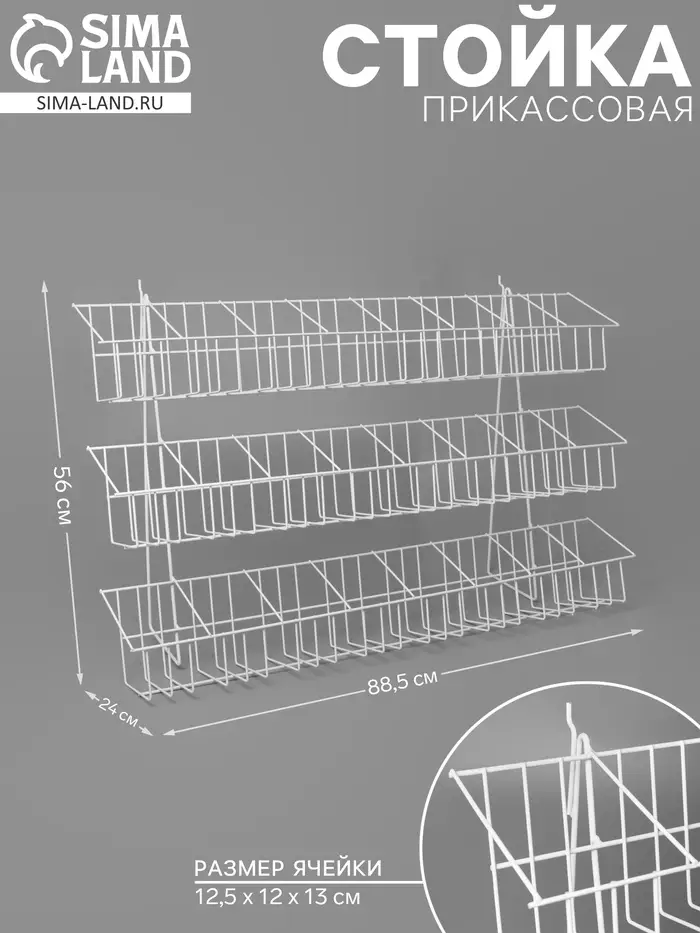 Стойка прикассовая 88.5×24×56 см, размер ячейки 12.5×12×13 см, белая