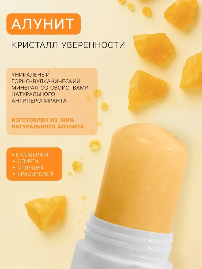 Минеральный дезодорант «Масло черного тмина». Представляет собой натуральный кристалл алунит, обладающий высокой антибактериальной активностью. Предотвращает появление пота и неприятного запаха в течение всего дня. Заживляет ранки и увлажняет.