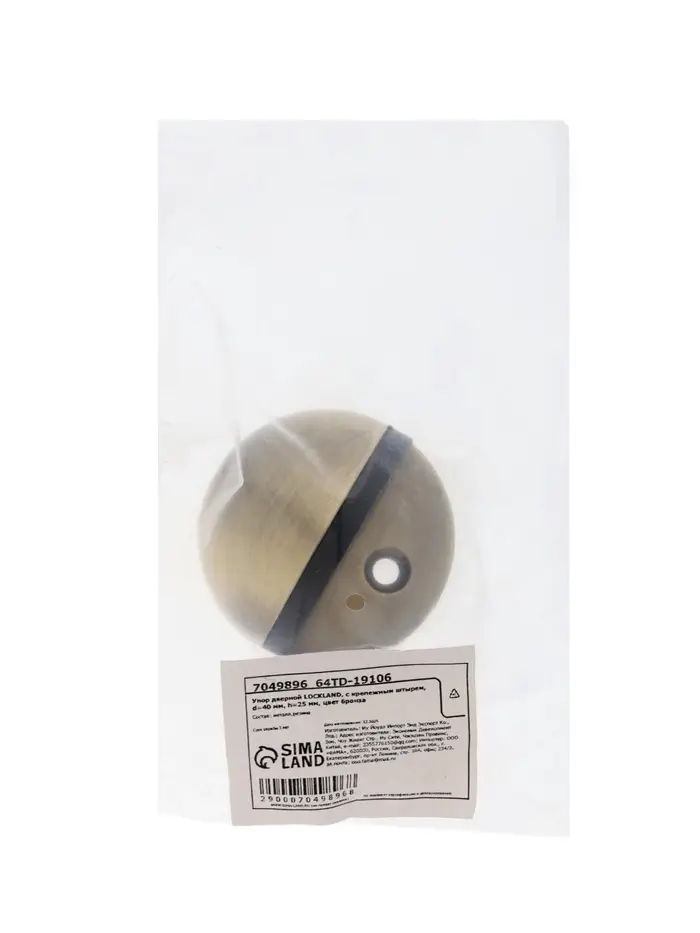 Упор дверной LOCKLAND, с крепежным штырем, d=40 мм, h=25 мм, цвет бронза