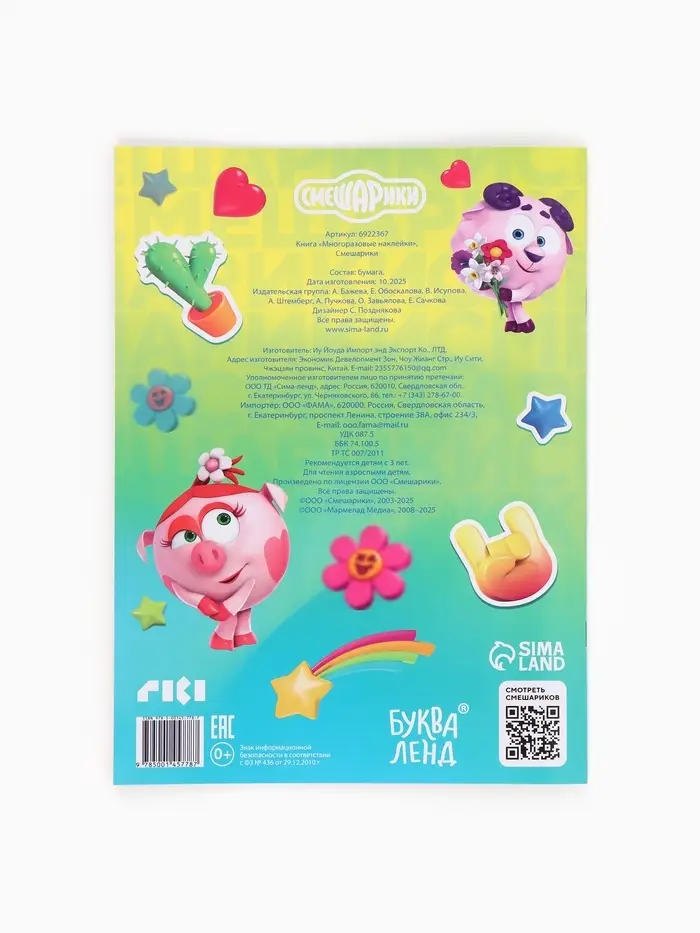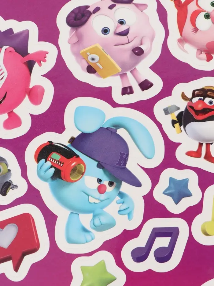 - 2 листа многоразовых наклеек с любимыми героями из мультфильма «Смешарики».