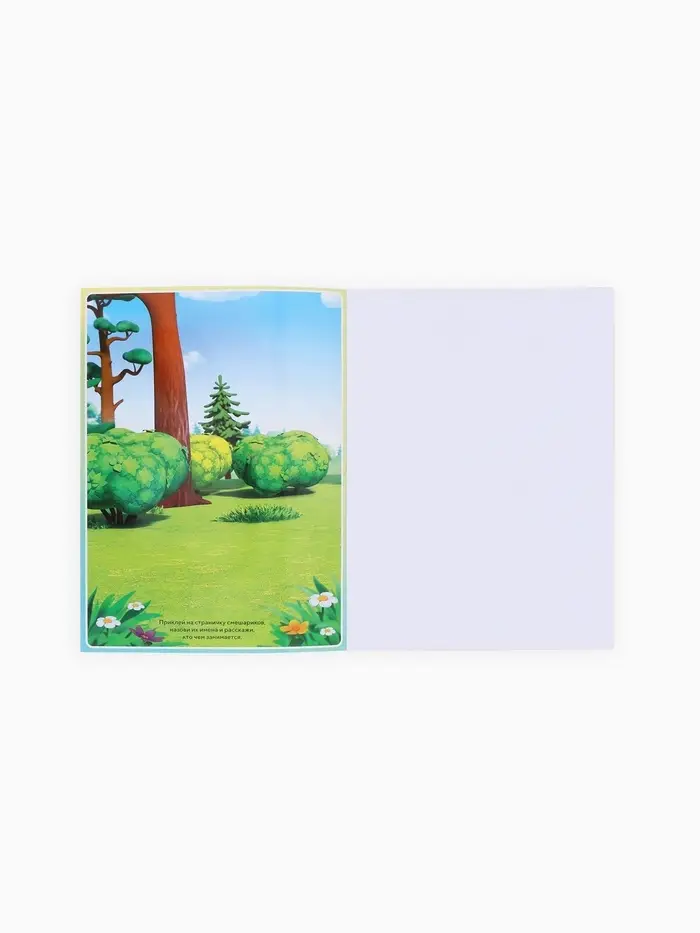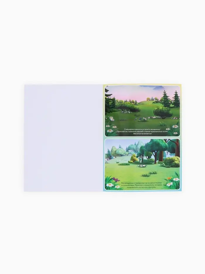- 2 страницы для размещения наклеек, где ребёнок может создавать свои собственные истории.