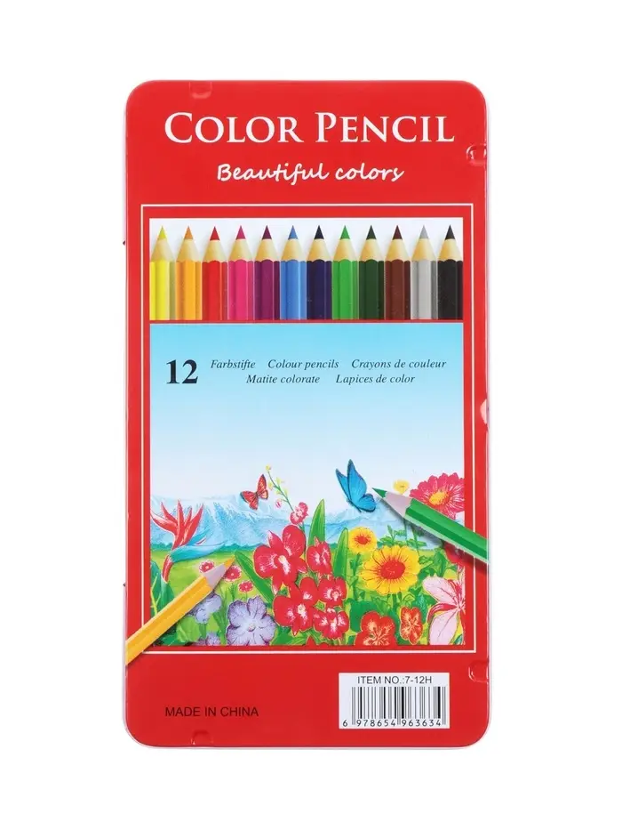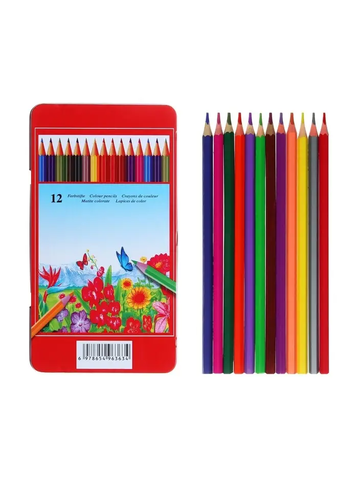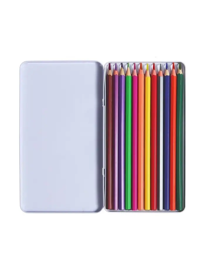 Карандаши цветные акварельные 12 цветов, корпус деревянный, шестигранные, в металлической коробке