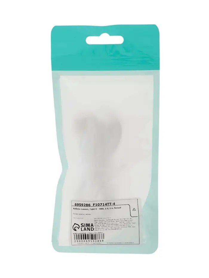 Кабель Luazon, Type-C - USB, 2 А, 1 м, белый