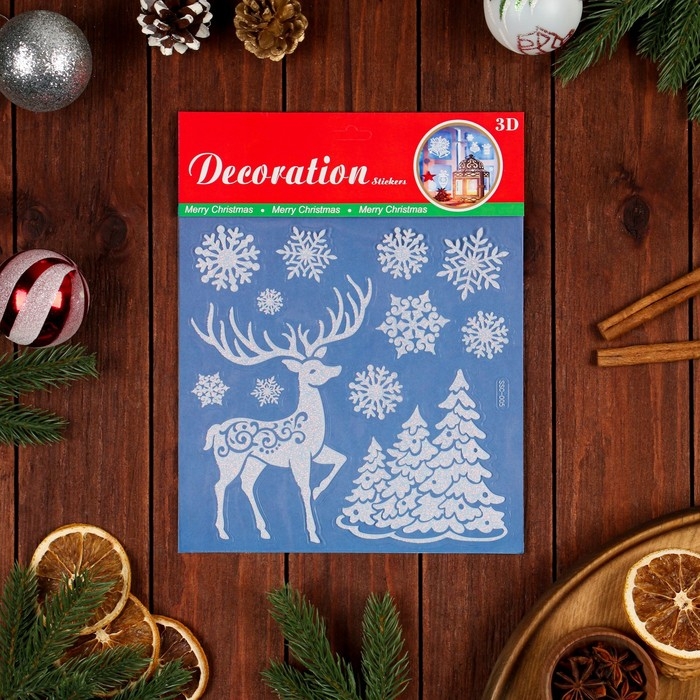 Наклейки на окна "Новогодние" Олень, снежинки, 26 х 21 см