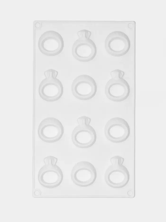 Эта форма подойдёт, если вы хотите, чтобы ваши сладости несли смысл — ”не просто шоколадка, а жест нежности”. Белый силикон подчёркивает чистоту линий, а тонкий рельеф кольца проявляется даже при минимальной толщине заливки. Используйте её для свадебных бонбоньер, годовщин или авторских десертов — результат будет выглядеть так, будто его создали специально для особенного момента.