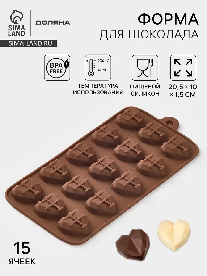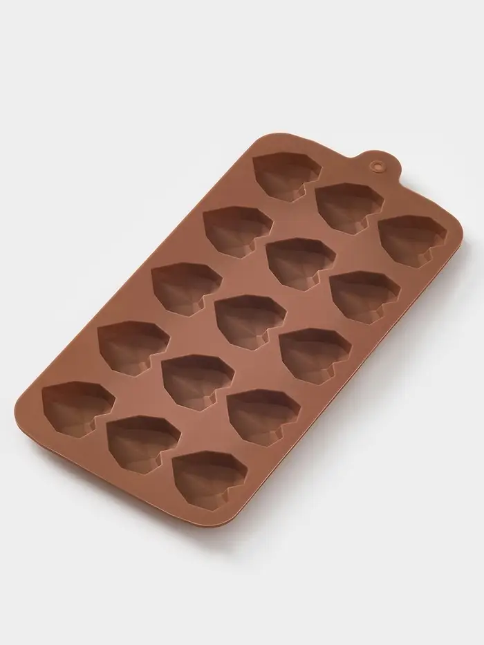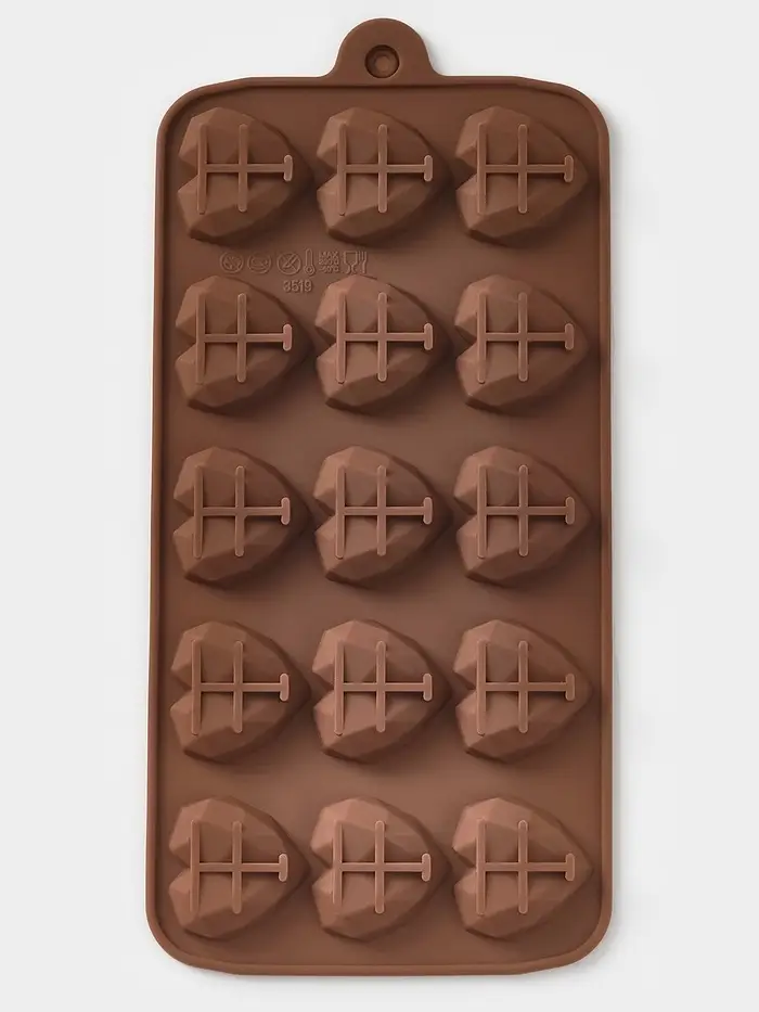 - 15 одинаковых ячеек в форме сердца — удобный объём для подарка или тематической сервировки.