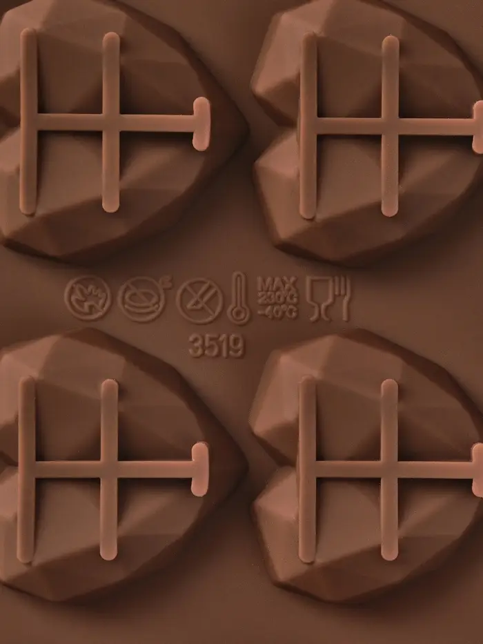 - Подходит для тёмного, молочного и белого шоколада, желе, марципана и других десертных масс — не требует смазки.