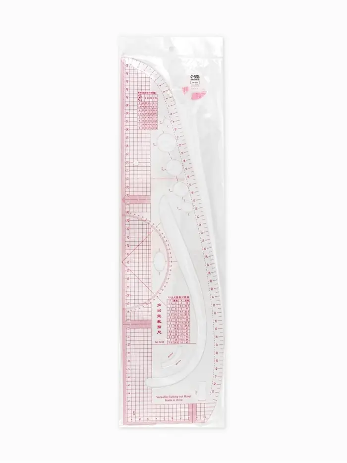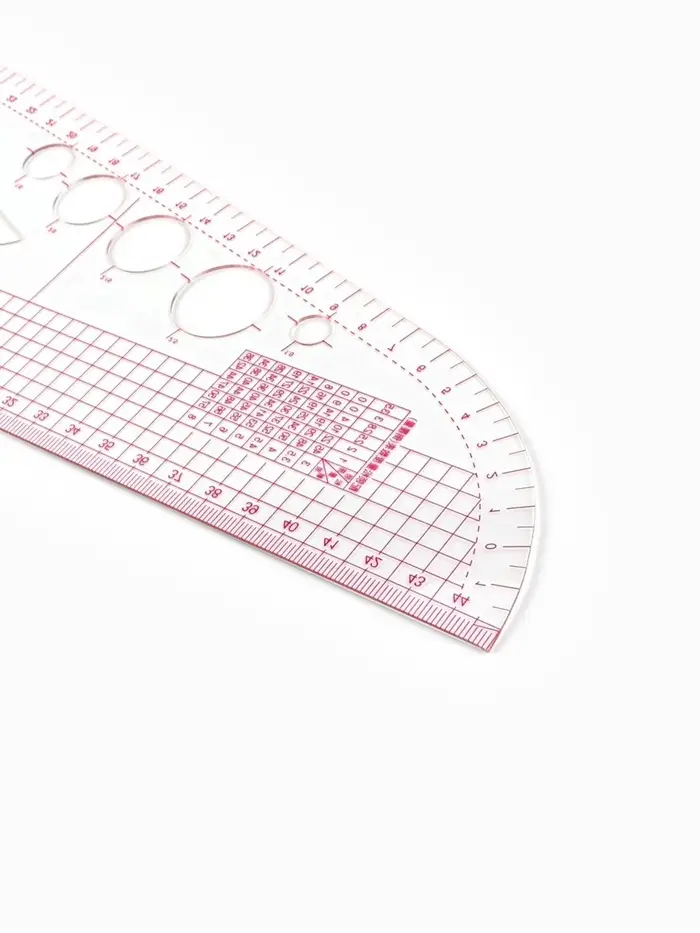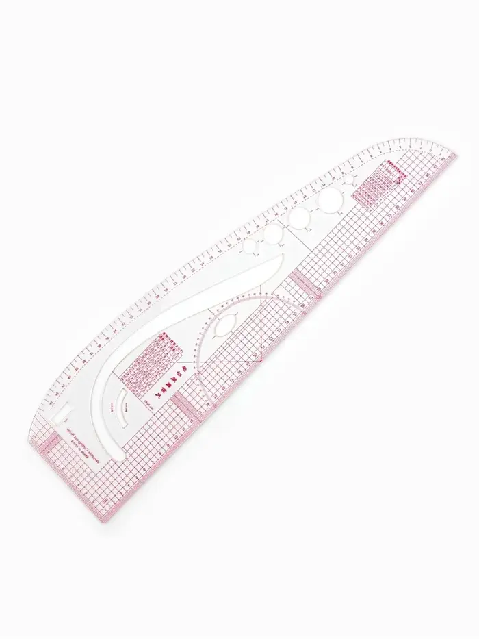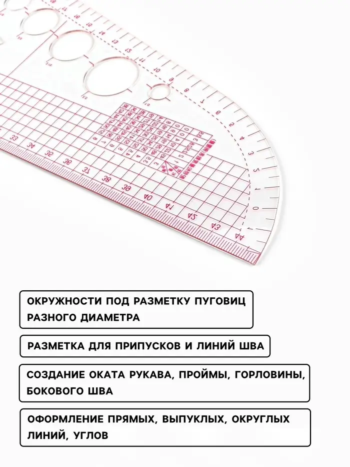 Лекало «Сапог» идеально подойдёт для создания оката рукава, проймы, горловины, низа изделия, рукава, бокового шва, разметки для припусков и линий шва. С помощью транспортира удобно чертить углы. Станет незаменимым помощником в построении окружности под разметку пуговиц разного диаметра и оформлении прямых, выпуклых, округлых линий, углов.