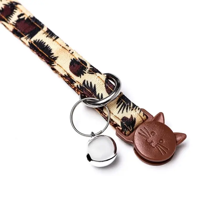 Кошачий ошейник с бубенчиком и застёжкой в форме кошки — нежный и безопасный аксессуар для повседневного ношения. Ошейник шириной 1 см регулируется по обхвату шеи от 18 до 28 см, что подходит как для котят, так и для взрослых кошек. Украшен металлическим бубенчиком для контроля передвижений.