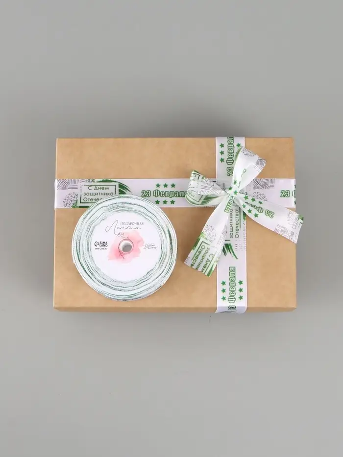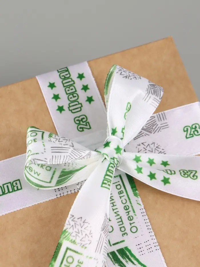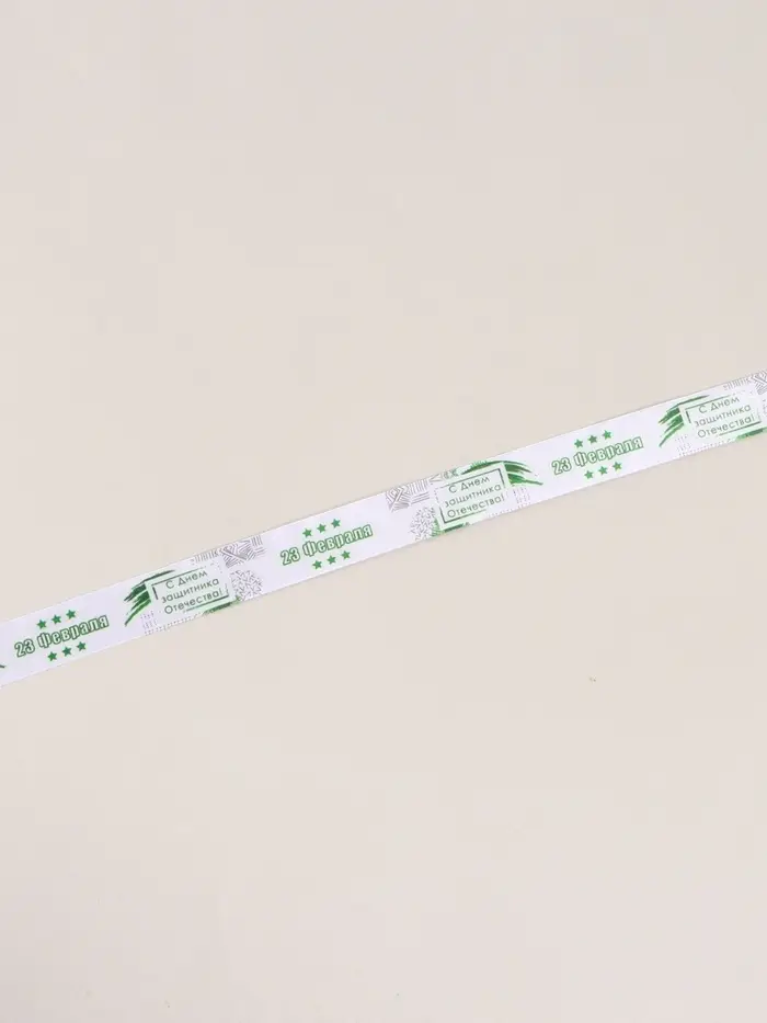 Лента атласная «С Днём защитника Отечества», 2.5 см × 22.5 (± 1) м, белая
