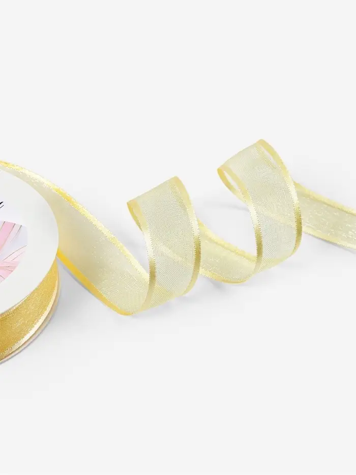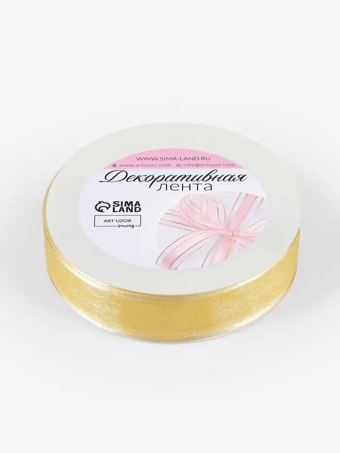 Лента декоративная, капроновая/атласная, с люрексом, 25 мм, 18±1 м, цвет золотой