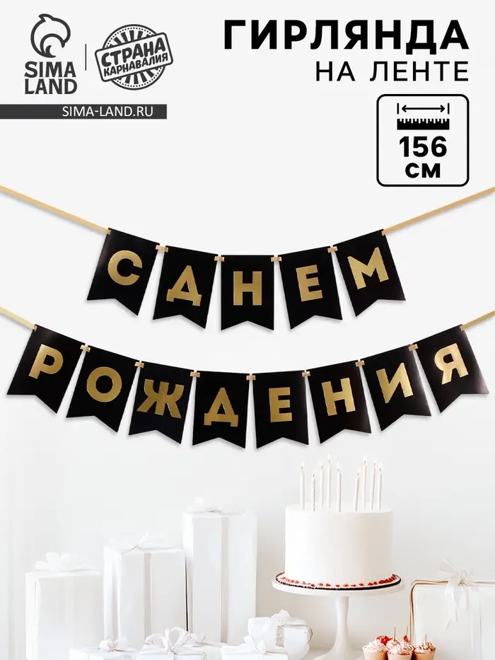 Гирлянда на ленте «С Днем Рождения», черная, 156 см, 250 г/м²