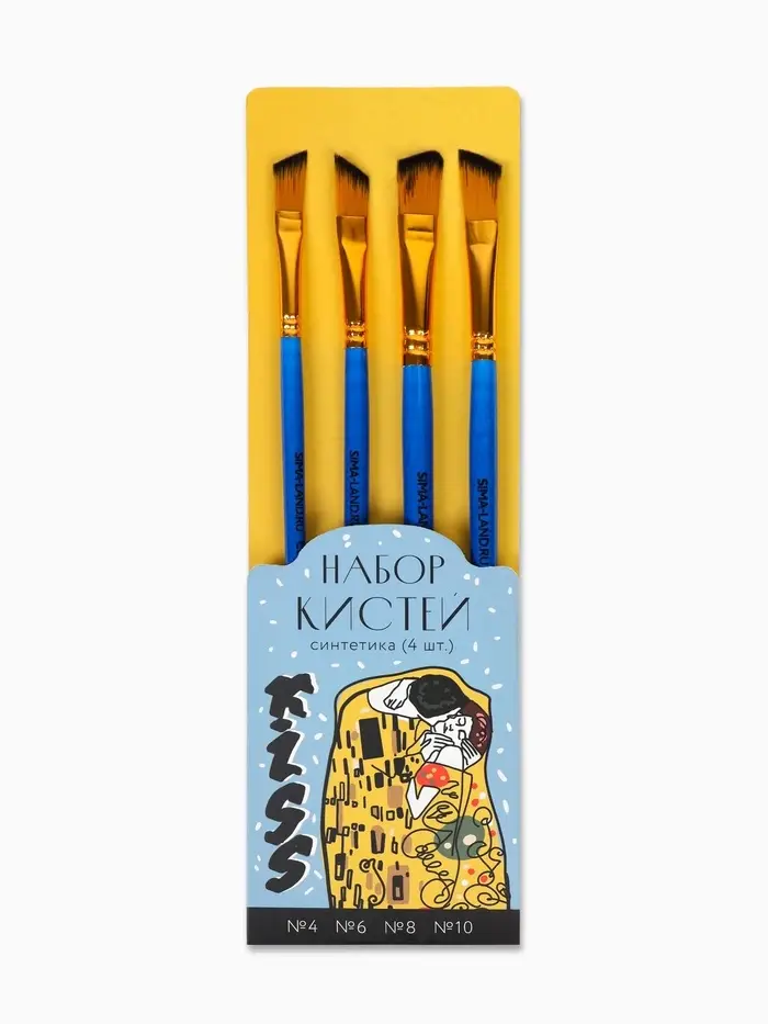 Кисть для рисования набор 4 шт. синтетика плоские Kiss №4, №6, №8, №10
