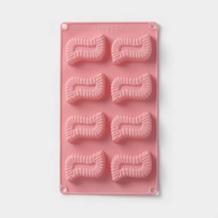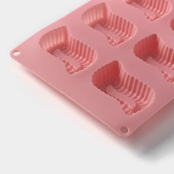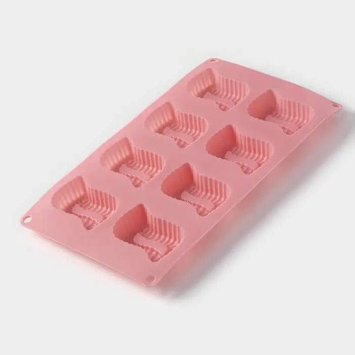 Форма для выпечки Доляна «Пирожное», силикон, 28×16×2 см, 8 ячеек (5×6.6 см), глубина 1.7 см, розовая