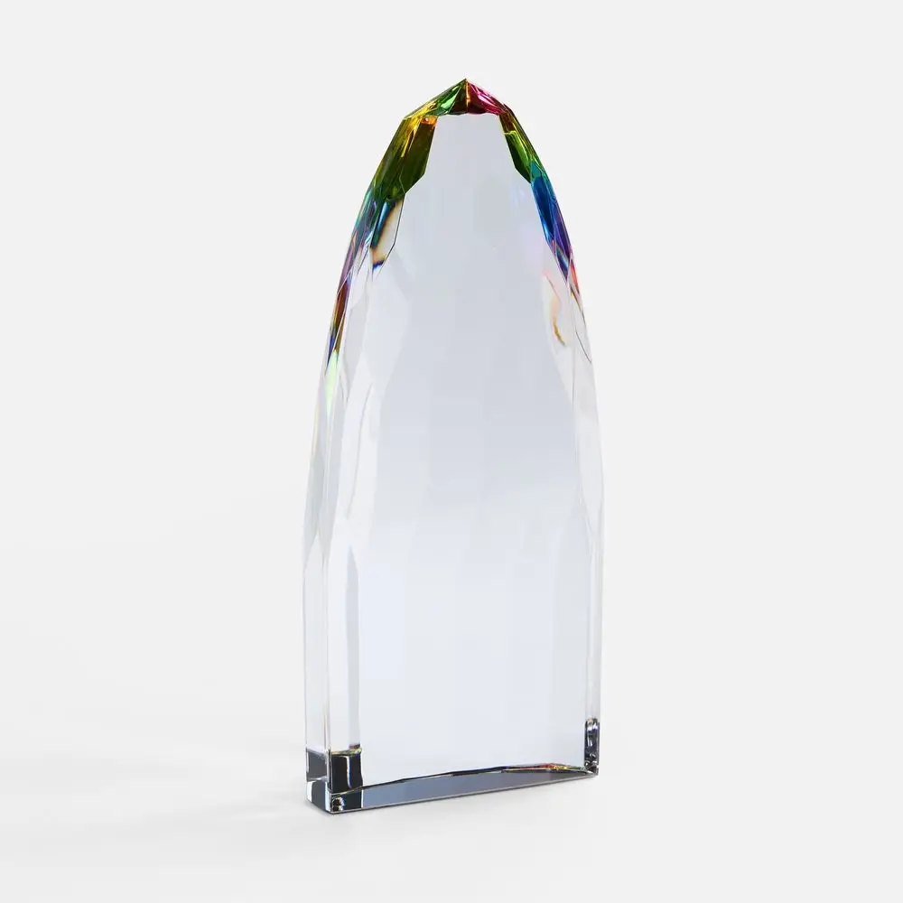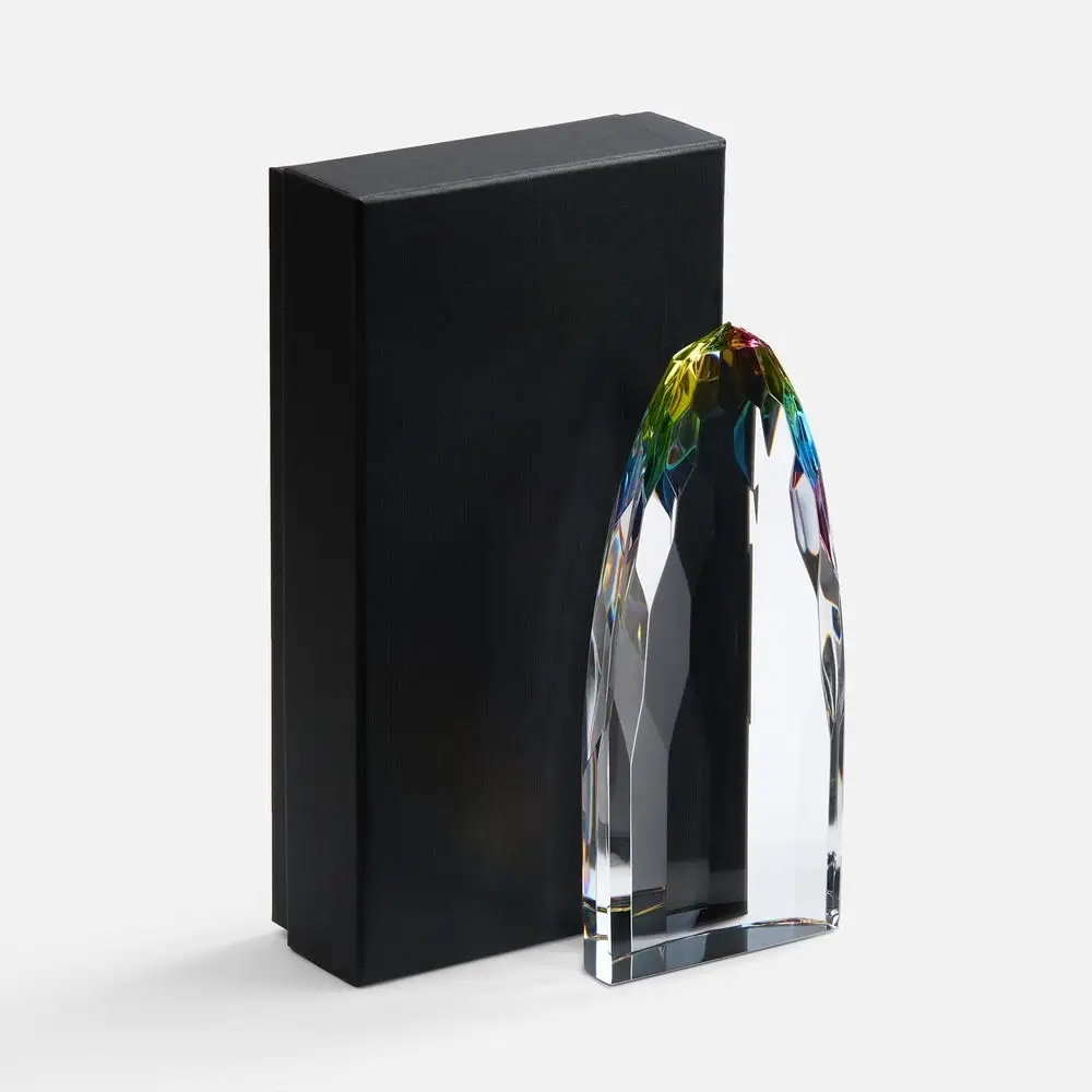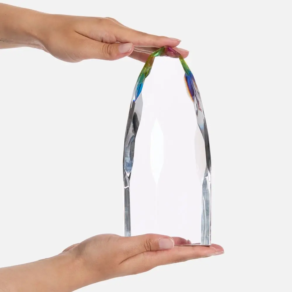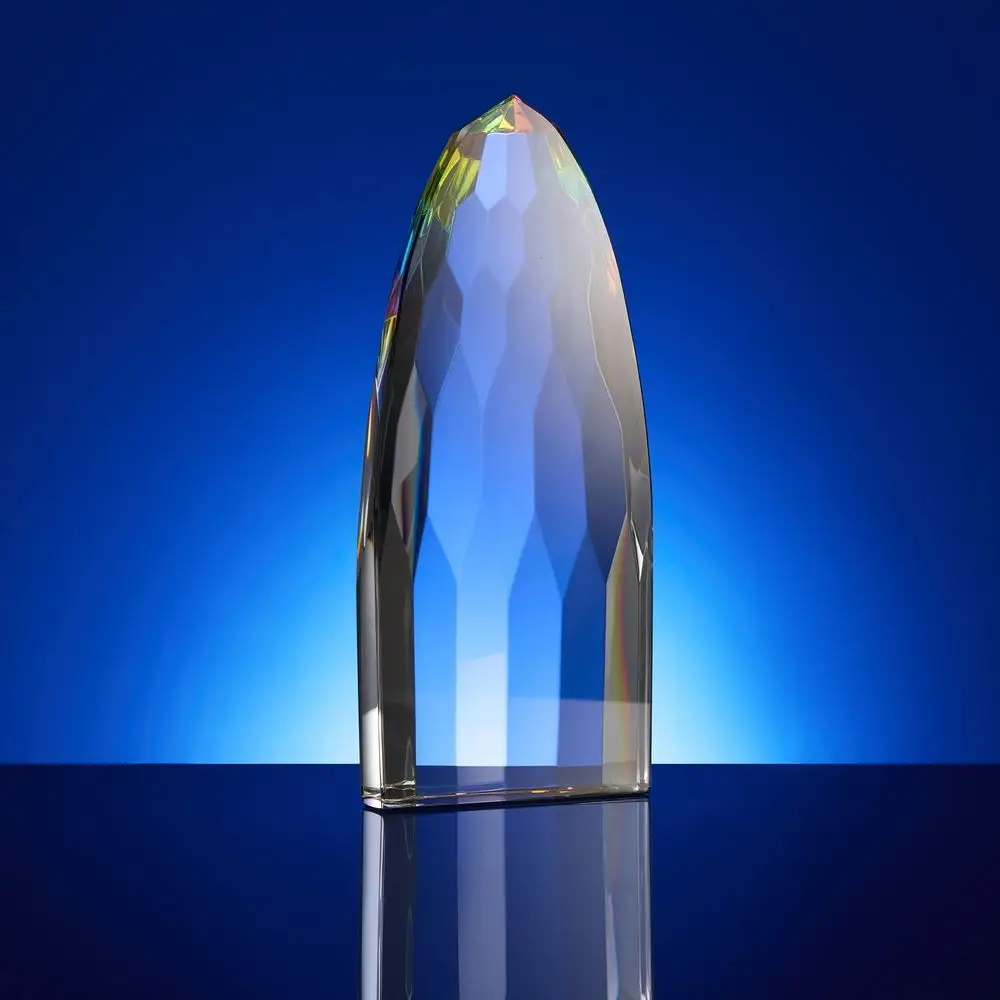 Объемная высокая стела Gleampeak олицетворяет стремление к победам и блестящий успех, свет от которого будет еще долго разливаться вокруг. Необычная форма с легкой огранкой и плавно скошенными краями усиливает визуальный эффект и создает притягательные отблески по всей стеле — она словно светится изнутри! Такое разноцветное свечение — яркий символ творческого подхода, который может окрасить в разные оттенки любое дело.
