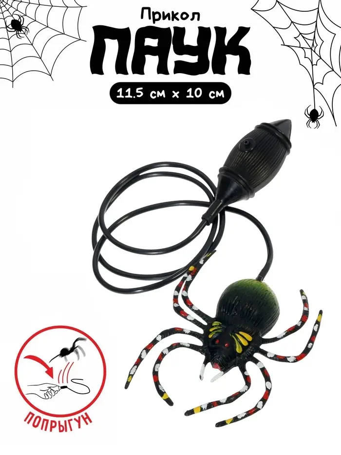 Прыгающий паук — это необычный и забавный сувенир, который может стать ярким дополнением к любой коллекции или оригинальным элементом розыгрыша. Принцип действия прост: при нажатии на резиновую помпу паук подпрыгивает.