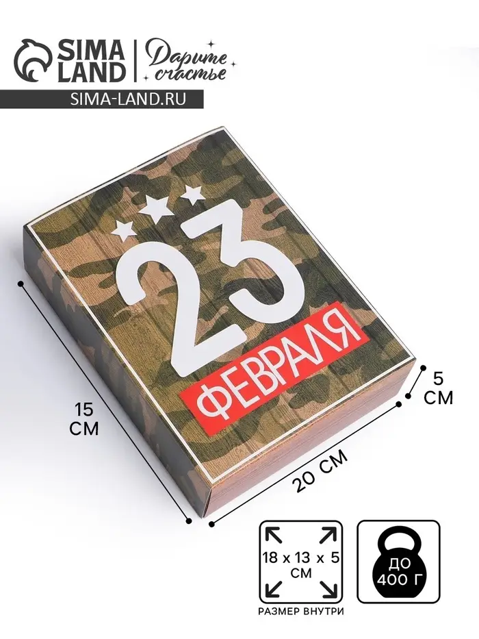 Коробка кондитерская, упаковка, «23 февраля», 20×15×5 см
