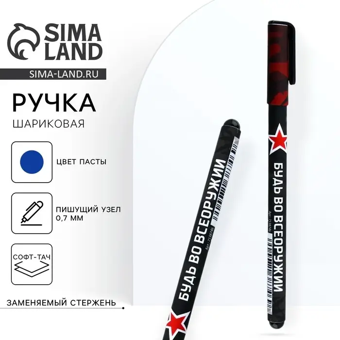 Ручка шариковая, синяя паста 0.7 мм с колпачком пластик софт-тач «Тому, кто держит удар»