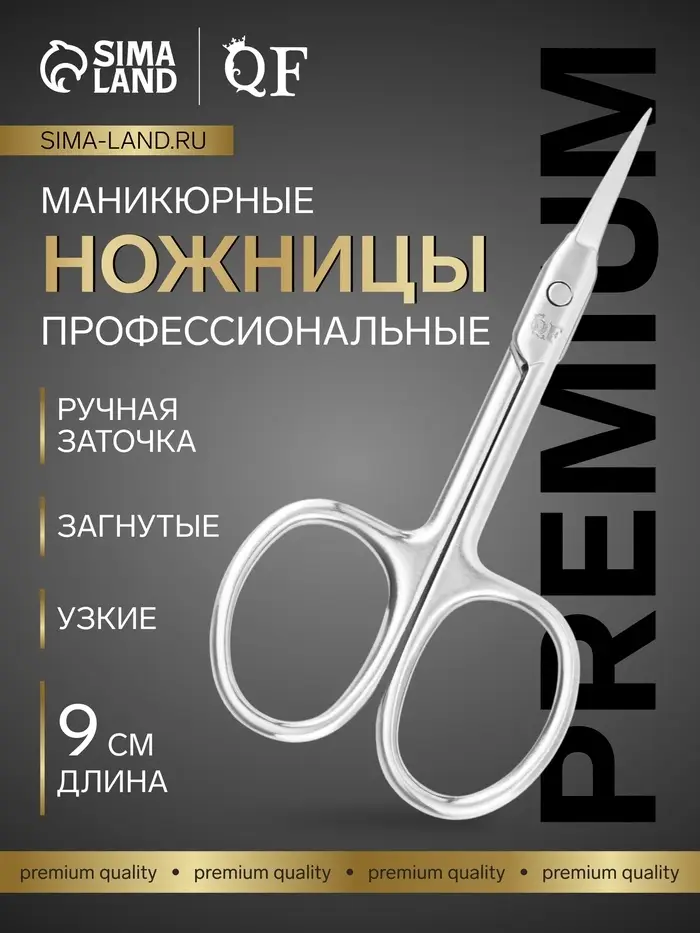 Ножницы маникюрные «Премиум», загнутые, узкие, 9 см, на блистере