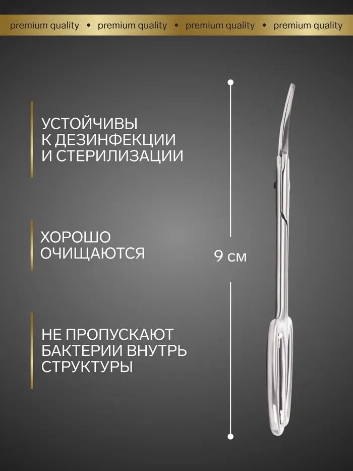 Ножницы маникюрные «Премиум», для кутикулы, загнутые, узкие, 9 см, на блистере