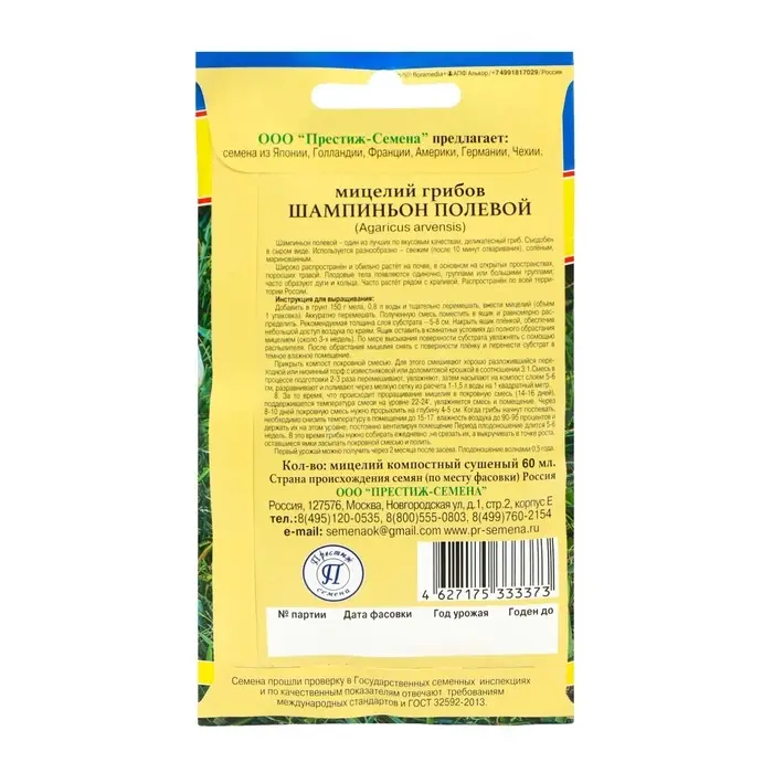Мицелий грибов «Шампиньон Полевой», 60 мл, «Престиж семена»