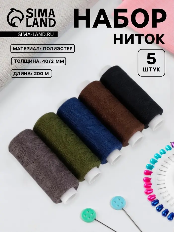 Нитки «Тёмный лес», 40/2, 200 м, набор 5 шт., разноцветные
