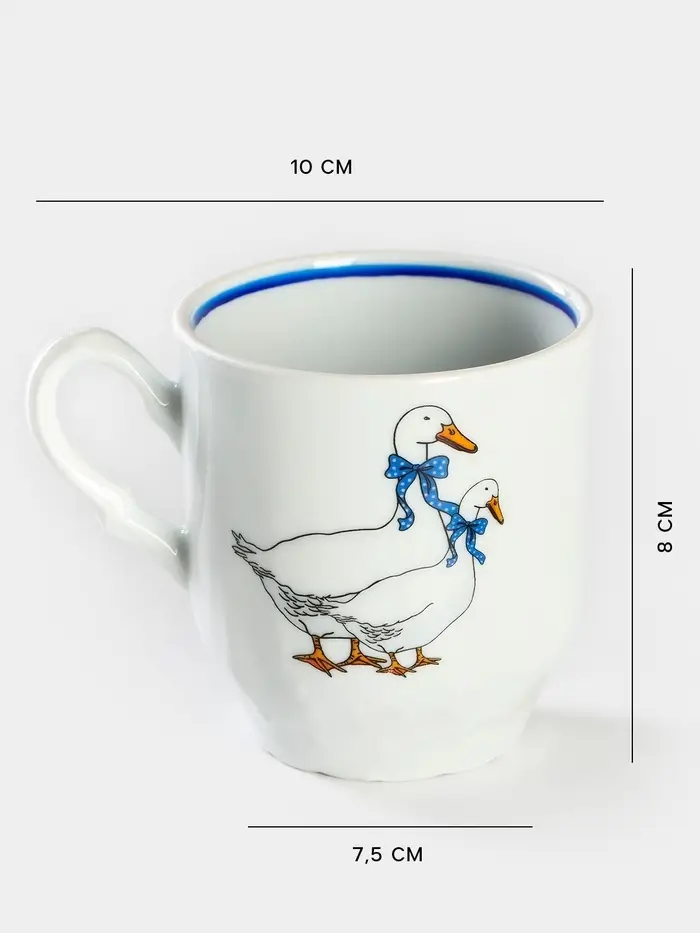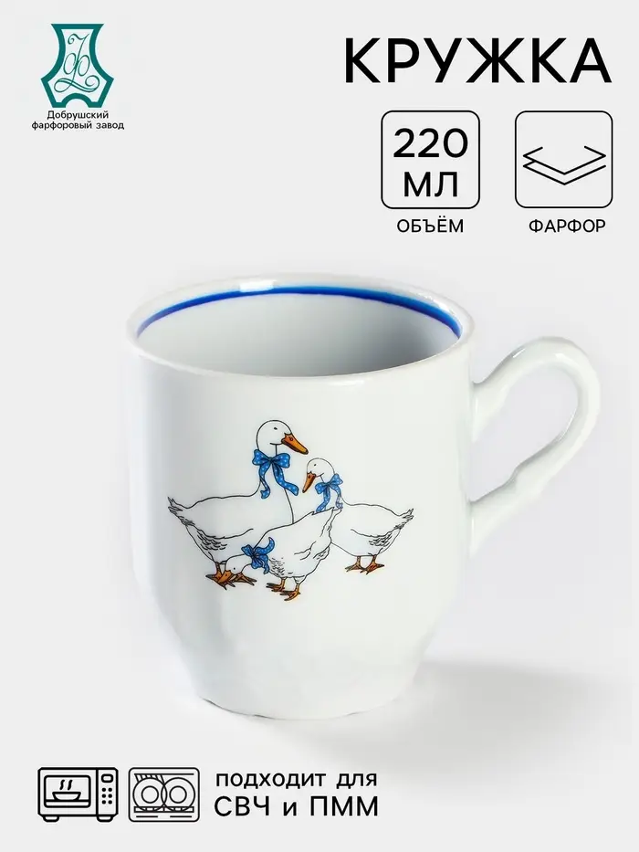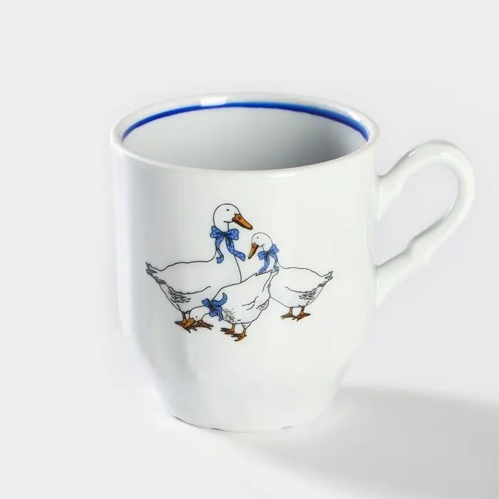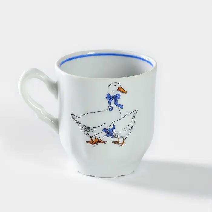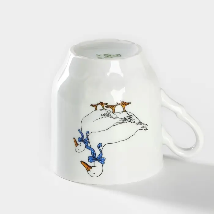Кружка Добрушский завод «Гуси», 220 мл, фарфор, белая, рисунок МИКС
