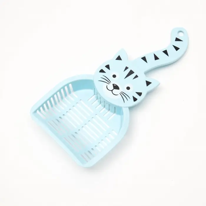 Совок для туалета «Довольный кот», 28×12.5 см, пластик, голубой