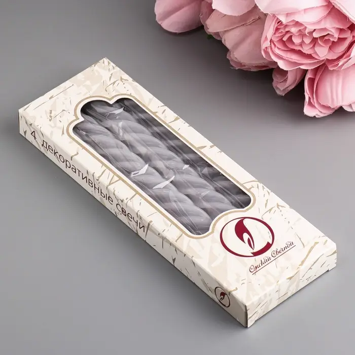 Набор свечей витых, 2.3×24.5 см, 5 ч, 50 г, 4 шт., серый, в подарочной коробке