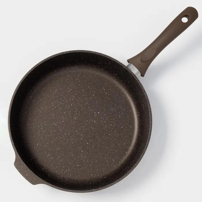 Сковорода KUKMARA «Мраморная», d=28 см, пластиковая ручка, антипригарное покрытие, литой алюминий, коричневая