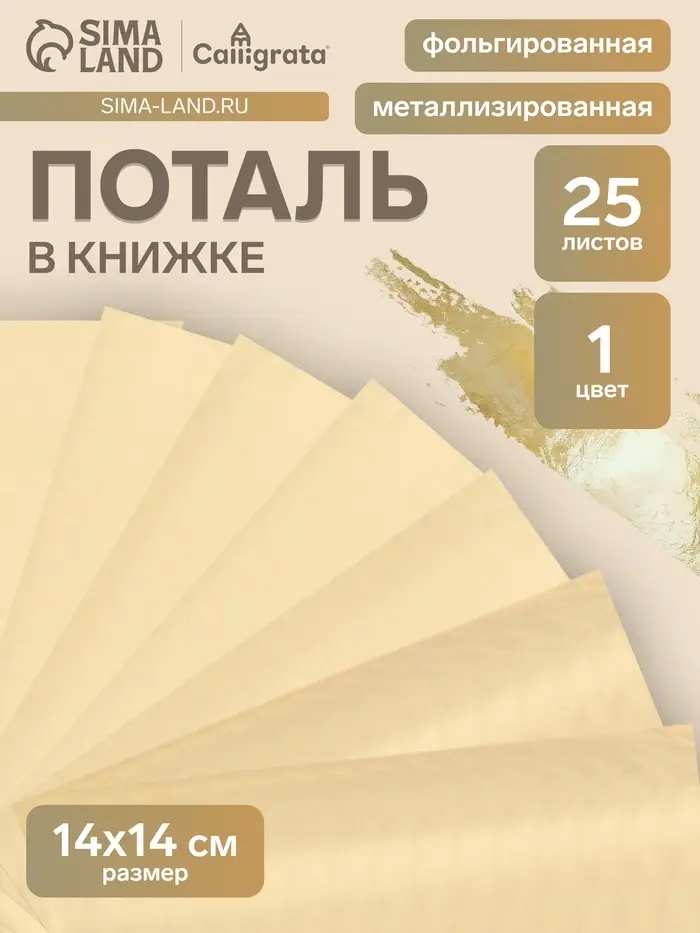 Поталь в книжке 14×14 см, 25 листов, золотая