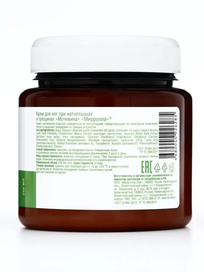 Крем для ног Mirrolla с мочевиной, 250 мл