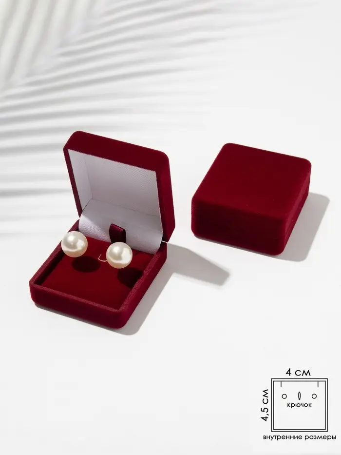Футляр бархатный под серьги, кулон «Традиции», 4.5×5×2 см, бордовый