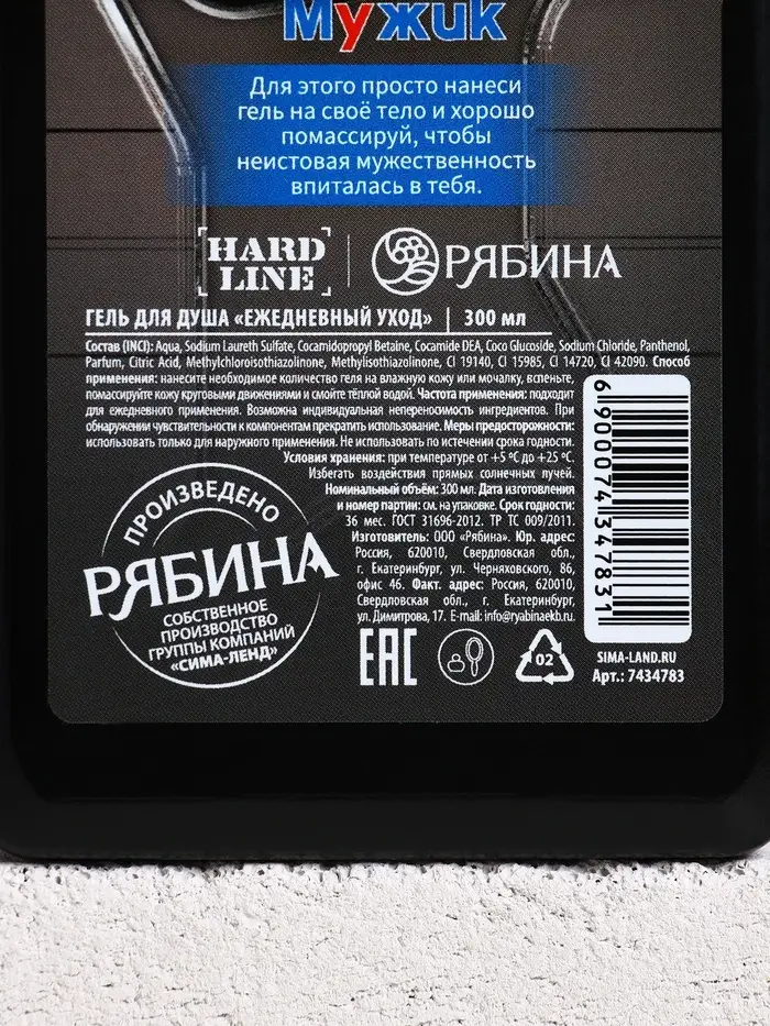 Гель для душа «Настоящий мужик», 300 мл, аромат древесный, HARD LINE