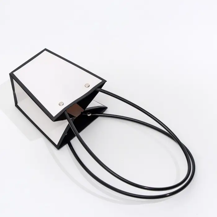 Элегантная водостойкая сумка для цветов — идеальное решение для стильной и удобной упаковки букетов и композиций. Изготовлена из плотного влагостойкого картона, надежно защищает цветы от влаги и деформации. Удобные длинные ручки позволяют легко переносить композицию.
