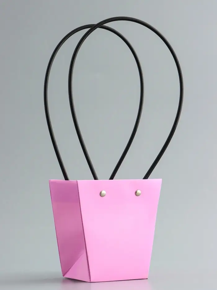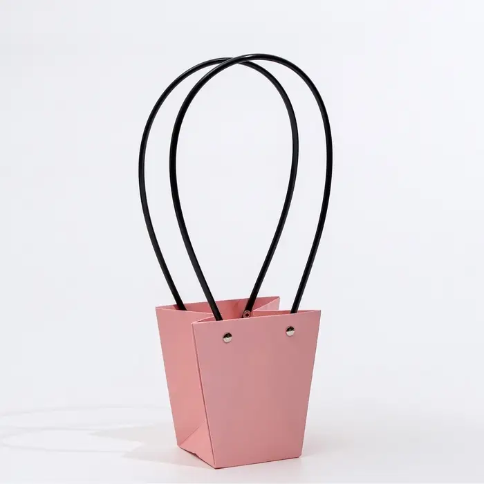 Сумка для цветов розовая влагостойкая, 12×12 - 8×8 - 12.5 см