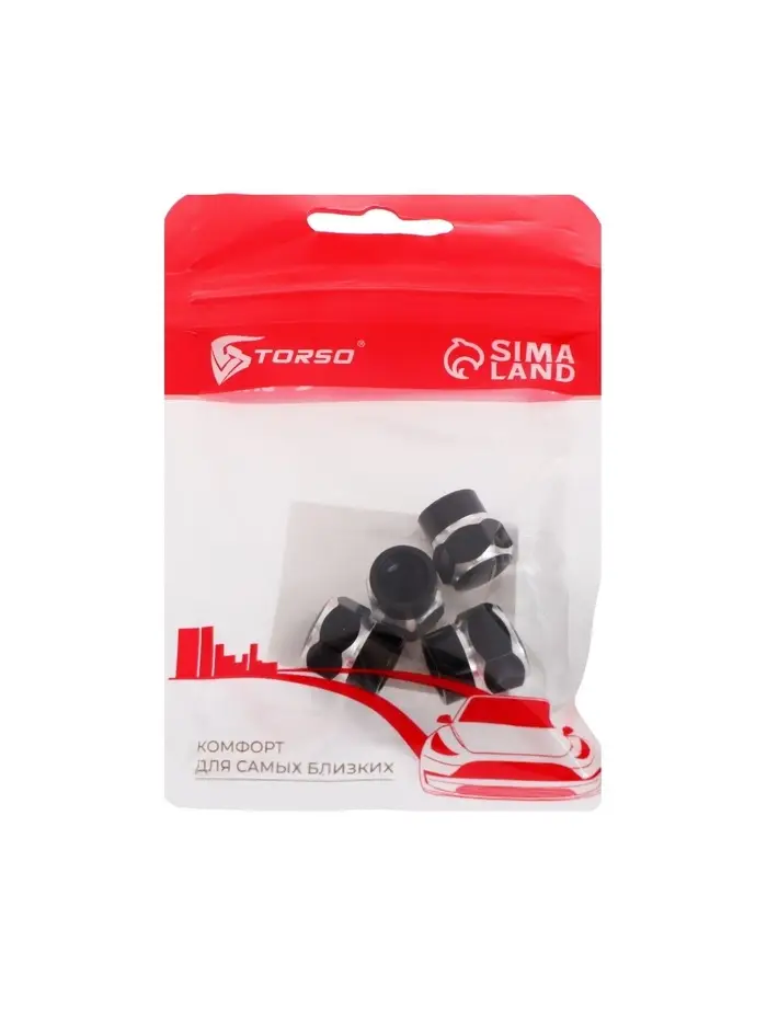 Колпачок на вентиль шины TORSO, черный, набор 4 шт.