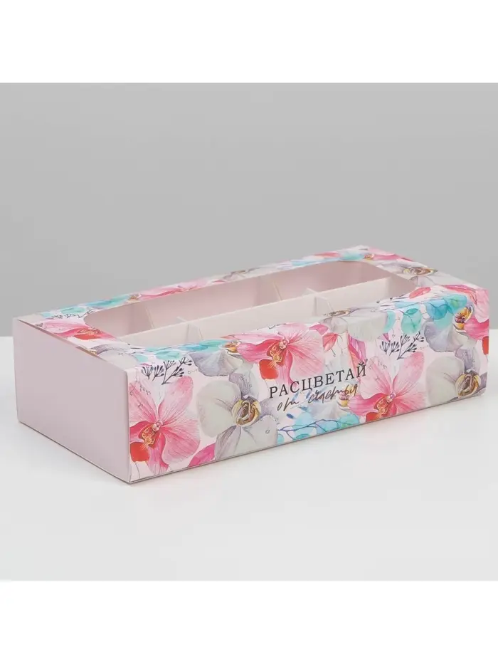 Коробка для конфет и кейк-попсов, кондитерская упаковка «Расцветай от счастья», 10×20×5 см