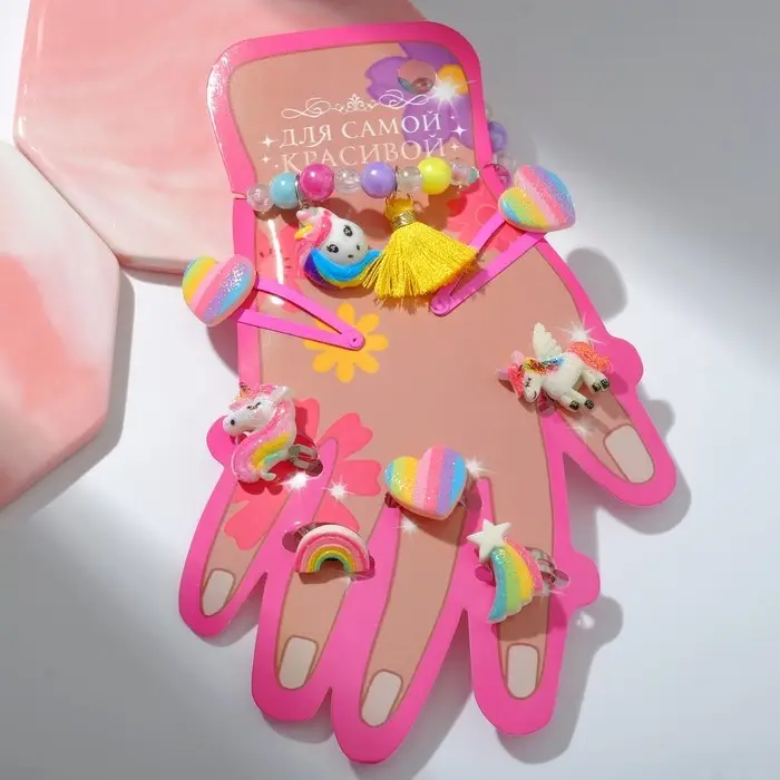 Комплект детских украшений «Выбражулька», 8 предметов: 2 заколки, браслет, 5 колец, форма МИКС, разноцветный
