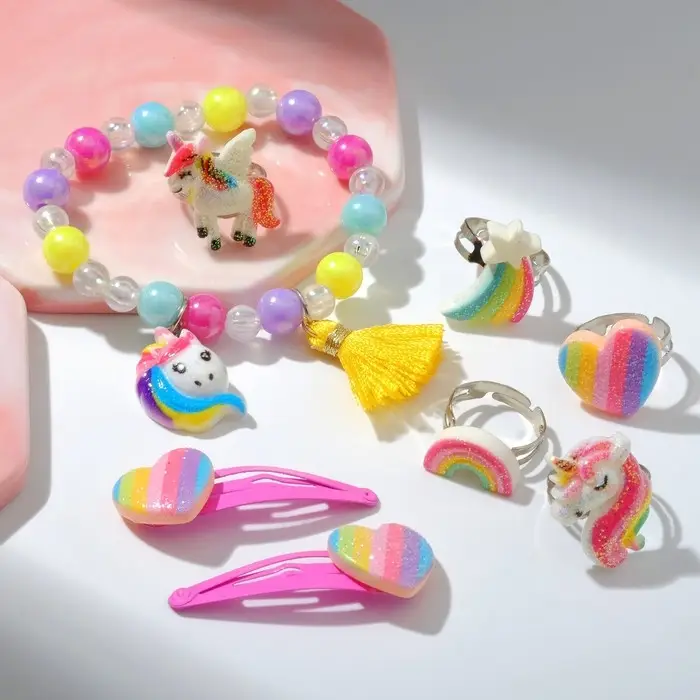 Набор детских украшений «Выбражулька. Единорог», 3 предмета: заколка, кулон, браслет d=5 см, розовый