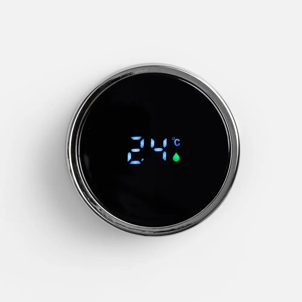 Умная термобутылка для заваривания Thermory отображает температуру жидкости на ЖК-дисплее — точные данные собирает встроенный в крышку датчик. Стенки из нержавеющей стали и вакуумная изоляция корпуса сохраняют напитки горячими (60 °C) в течение 8 часов или прохладными (10 °C) в течение 12 часов.
