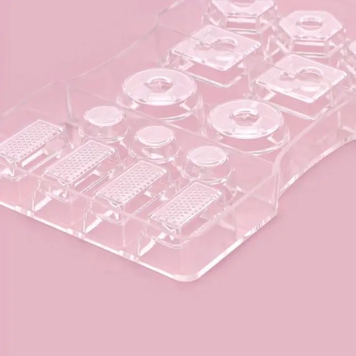 Форма «Ассорти» — универсальный выбор для тех, кто любит разнообразие в домашних сладостях. Четырнадцать ячеек геометрических форм позволяют отлить за один раз целую коллекцию шоколадных или желейных конфет — идеально для подарков, дегустаций или угощений к чаю. Подходит как для классического тёмного шоколада, так и для экспериментов с начинками: орехами, сухофруктами, морской солью или специями.